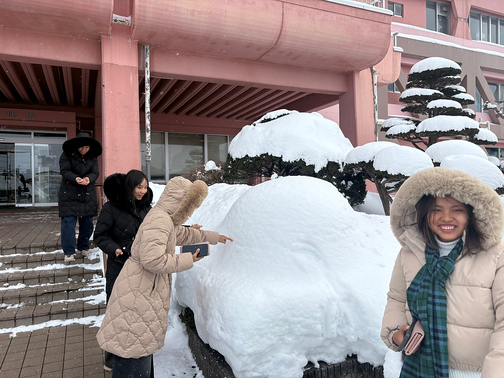 青森に到着すると、まず感じたのは空気の冷たさ。2月の青森はやはりとても寒く、母国ミャンマーとの気温差に皆さん驚いていました。